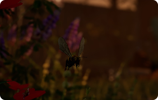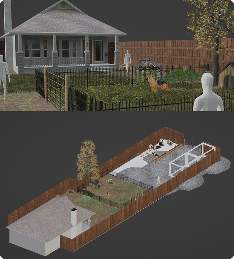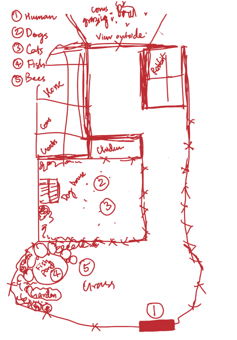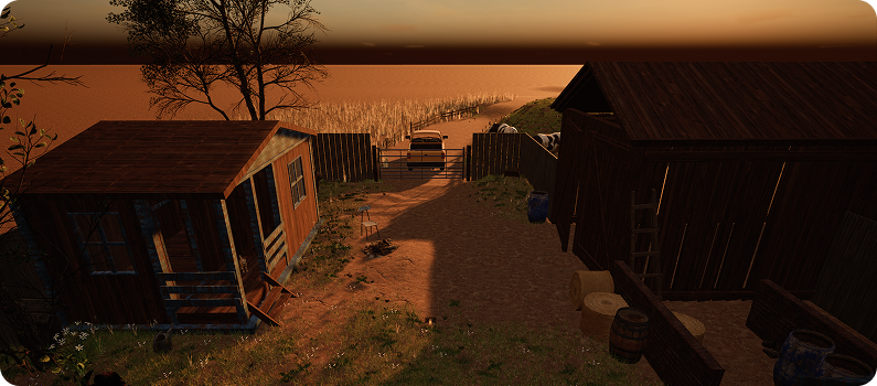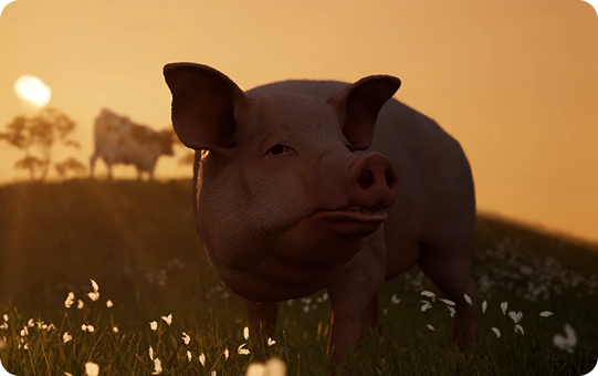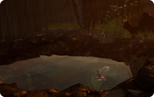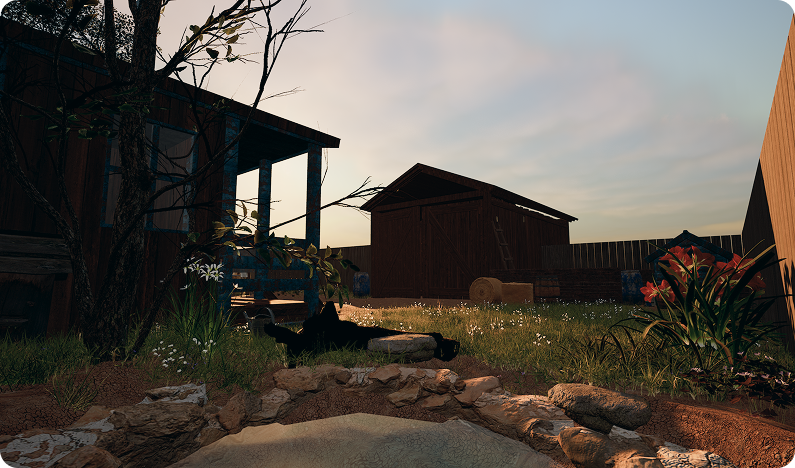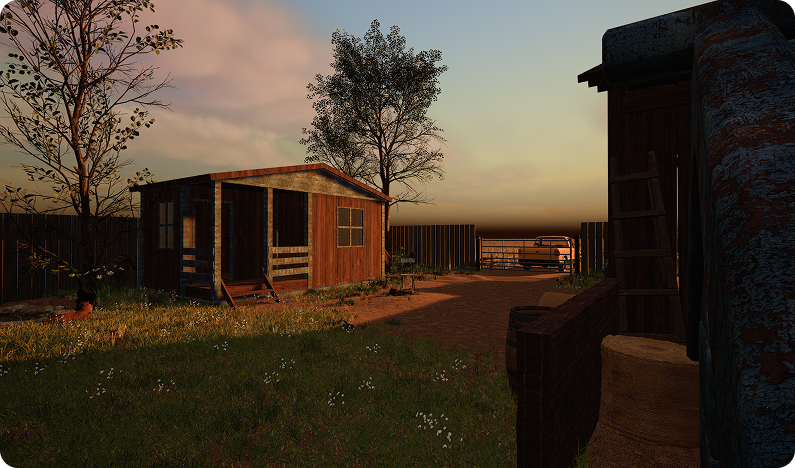 To support all perspectives within one space, the environment was designed as a farm and garden at golden hour. This setting allowed different animals to coexist while offering varied zones for interaction.