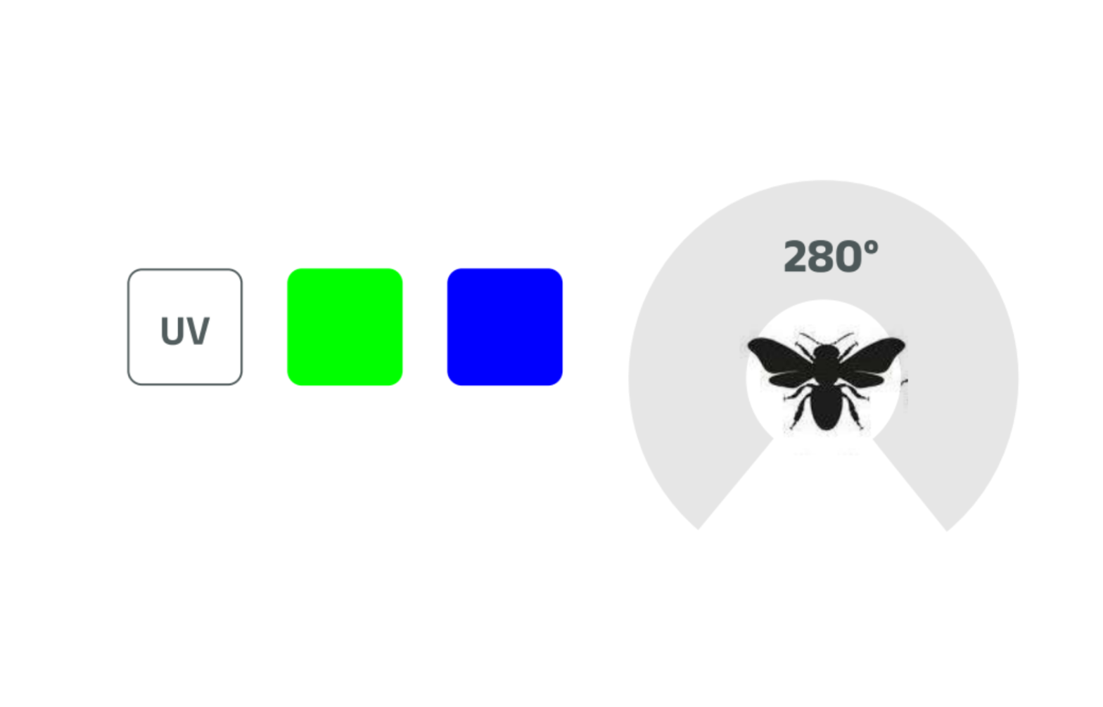 - Bee: Wide FOV (~280°), UV sensitivity