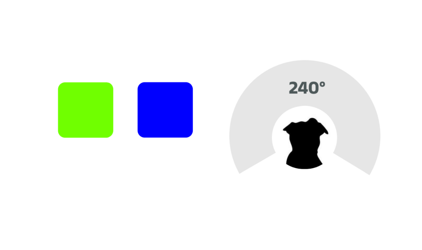 - Dog: Dichromatic vision, wide peripheral