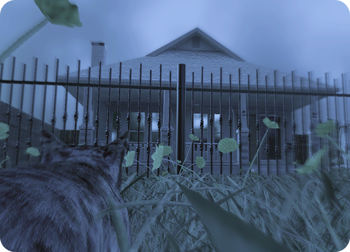 Research drew from academic papers, veterinary sources, online simulations, and video references. Each animal’s vision was distilled into a small set of traits that could be translated into real-time VR.