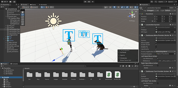 Movement was designed to feel natural while minimizing discomfort. Humans, cats, and dogs use gaze-aligned joystick movement, while bees and fish move in three dimensions using controlled acceleration and gaze-based direction. Spatial audio was integrated throughout to reinforce immersion.